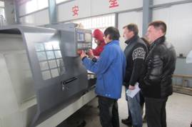 February 28, 2013, the Russian businessmen delegation of four people to the acceptance of the order before the Spring Festival of CNC pipe thread lathe. Merchants after a closer look at the product, start running, hands-on and sample processing and other sectors, successfully passed the acceptance. Expressed satisfaction with the overall product, programming, operation and sample processing technical training in the company.