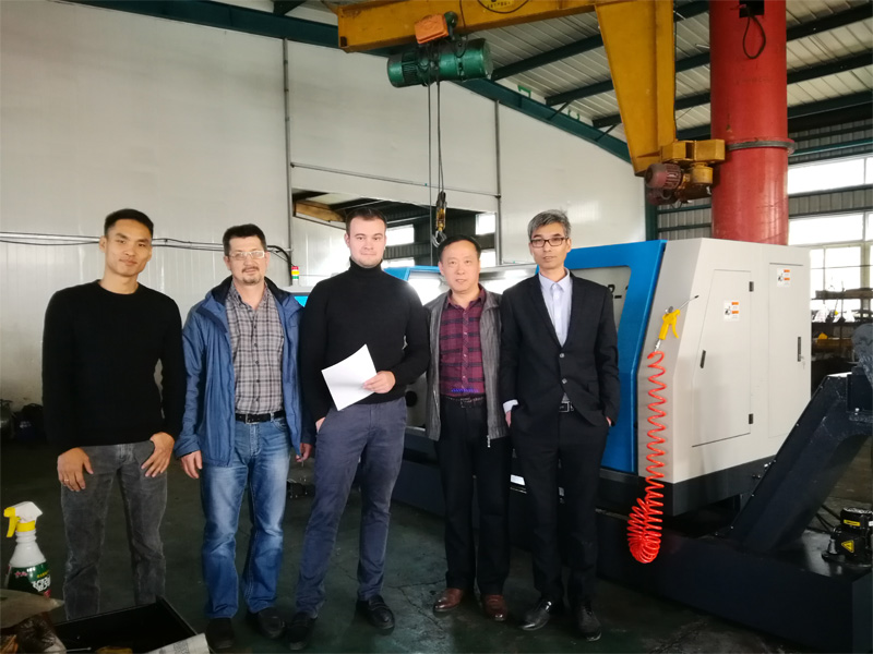 CNC550B-1是海數(shù)公司為俄羅斯客戶訂制的斜床身數(shù)控車床。主要特點(diǎn)是配置高、精度高、效率高。主要配置:西門(mén)子828D系統(tǒng)、臺(tái)灣8工位刀塔、英國(guó)雷尼紹對(duì)刀儀、液壓卡盤(pán)、液壓尾座、大直徑中心支架。大加工直徑500mm,大加工長(zhǎng)度1500mm,適合于盤(pán)類件和軸類件的高效精密加工。該斜床身數(shù)控車床一次性通過(guò)用戶驗(yàn)收,受到俄羅斯客戶的好評(píng)。詳情參見(jiàn)www.tiaomaotuan.cn